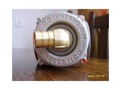 przepustnicy. Przed zamontowaniem należy zadbać o to by silnik krokowy zasysał powietrze już wzbogacone o gaz czyli gotową mieszankę - w innym wypadku będzie niemożliwe ustawienie wolnych obrotów bo będzie próbował pracować na samym powietrzu. Realizujemy to w podobny sposób jak w przypadku tradycyjnego miksera. Wlot przewodu od silniczka krokowego przekładamy z fabrycznego miejsca jakim jest plastikowy przewód powietrzny w nowoutworzony otwór już za BLOSem. Producent przygotował juz miejsce na taki przewód w BLOSie jednak wymaga to ingerencji w niego poprzez nawiercanie i gwintowanie otworu. Podobny rezultat uzyskujemy tworząc otwór w kolanku gumowym tuż za BLOSem i montując na nim kolanko żeliwne do którego podłączamy przedłużonego węża od silniczka krokowego. Należy zadbać o to by było to stabilnie zamocowane i nie powodowało rozszczelnień układu dolotowego. Wąż doprowadzający gaz powinien być dołączony do kolanka